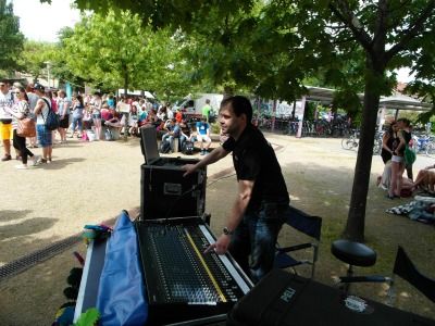 Die Beschallung und die Band standen auf einer schwimmenden Bühne und wurden vom Land aus gesteuert.
